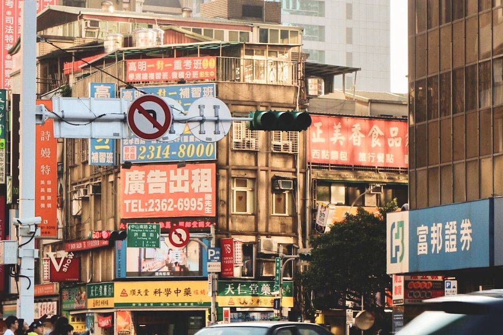 Image d'une rue très fréquentée dans le centre de Taipei. En couleur.