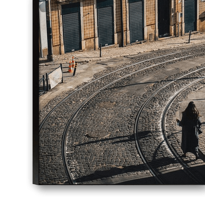 La femme qui entre sur la photo se rend dans un café. La lumière du matin combinée aux magnifiques bâtiments jaunes fait que cette photo vous ramène à votre voyage à Lisbonne.