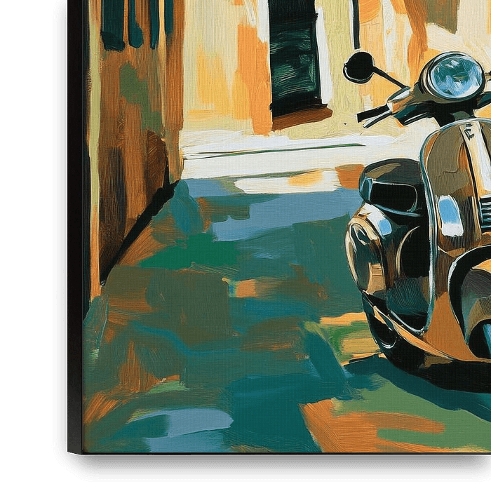Acheter ce tableau Ruelle Vespa par Poster Art Shop sur toile, aluminium, ArtFrame ou photographie (encadrée), impression d'art en haute qualité et tout format.