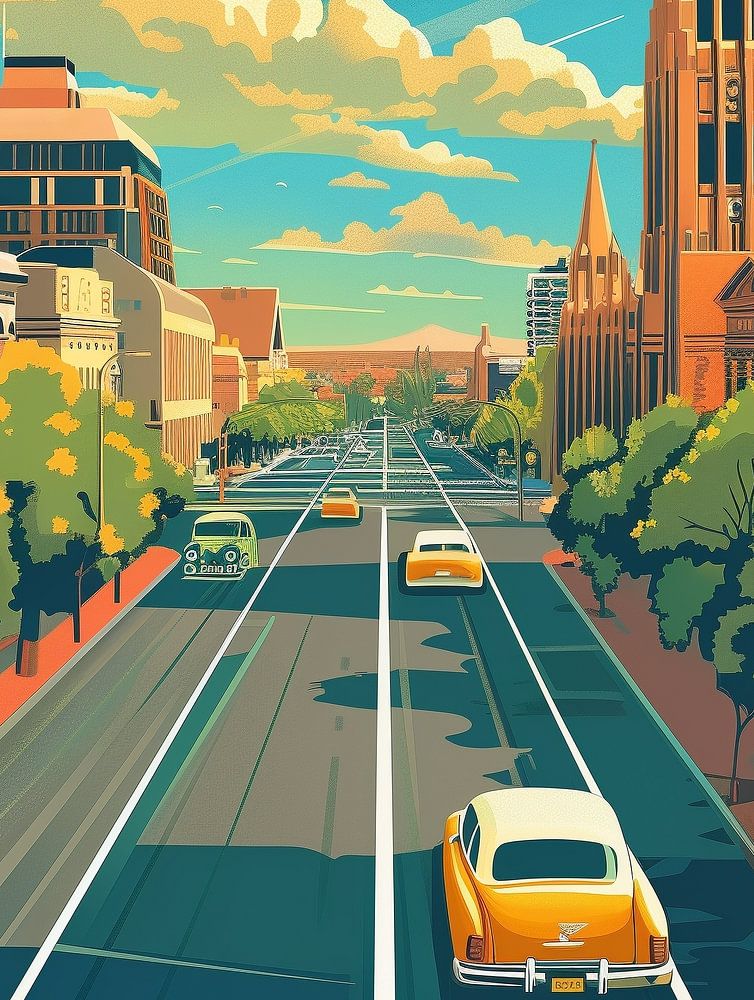 Plongez dans la sophistication décontractée de l'Australie du Sud avec ce poster de voyage d'Adélaïde. Avec son boulevard pittoresque encadré par une architecture historique élégante et des arbres verdoyants, cette œuvre d'art capture le charme ensoleillé et le pouls métropolitain d'Adélaïde. Des voitures anciennes circulent le long de larges avenues sous un ciel parsemé de nuages, évoquant les après-midi tranquilles et le mélange harmonieux du passé et du présent de la ville. Parfaite pour les admirateurs des villes australiennes, des paysages urbains et de la décoration rétro, cette pièce apporte une esthétique à la fois vivante et apaisante à n'importe quelle pièce. Qu'il s'agisse d'ajouter une touche cosmopolite à votre espace de vie, votre bureau ou votre espace de travail, ce poster d'Adélaïde rend hommage à la richesse culturelle de la ville, à ses églises emblématiques et à ses paysages de rue accueillants. Célébrez la beauté du sud de l'Australie et l'attrait intemporel de sa capitale avec un imprimé qui suscite l'envie de voyager, la fierté et l'amour des aventures urbaines raffinées.