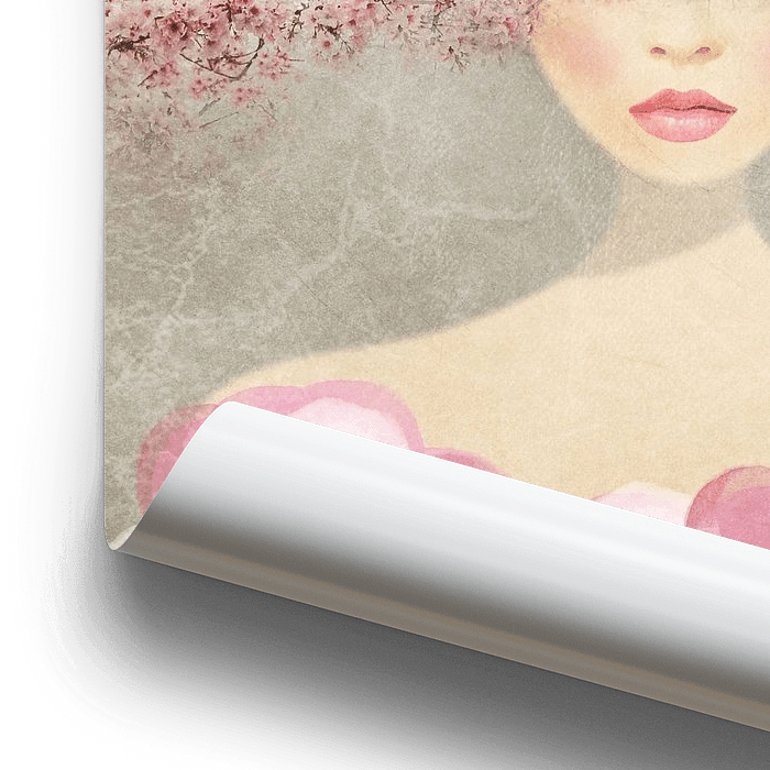 Portrait illustratif et surréaliste avec une coiffure en fleurs de cerisier