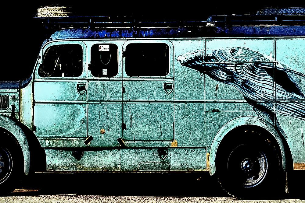 Photo éditée graphiquement d'un vieux camion MAN avec une belle peinture d'une baleine. Photo d'une série de 4.