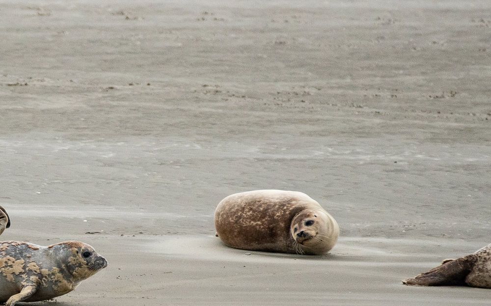 Dans la mer des Wadden, des dizaines d'oiseaux marins se reproduisent près de l'assiette des Anglais et des centaines de phoques se reposent. Une impression de ceci !
