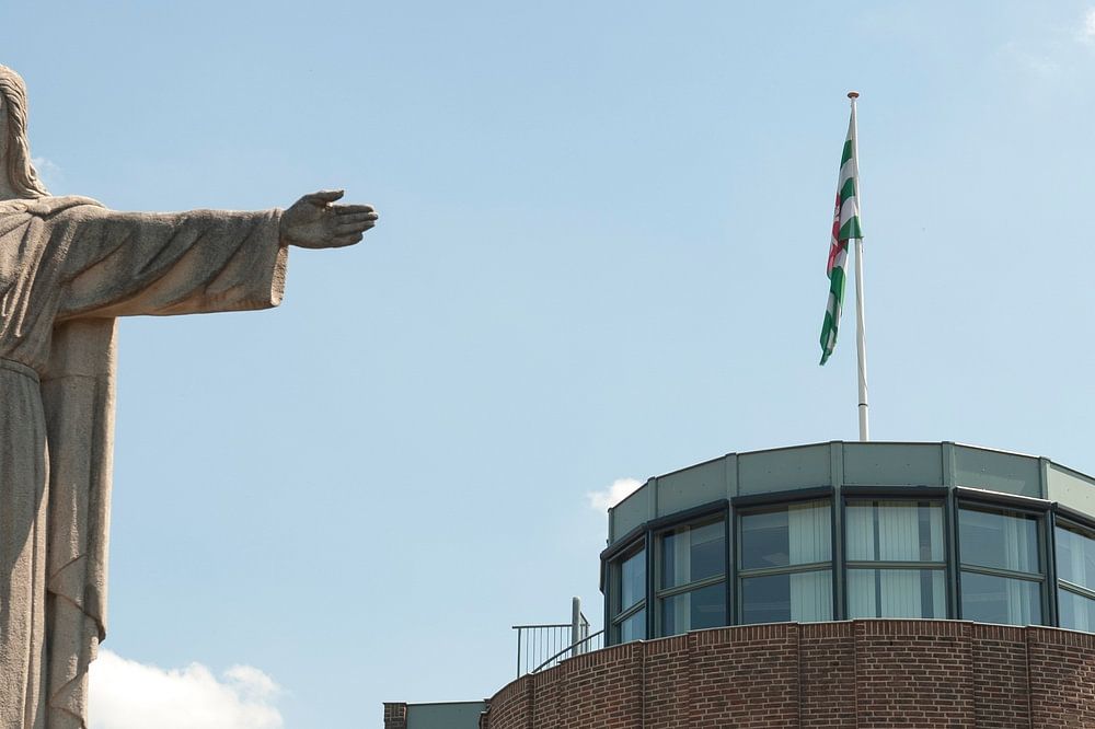 Schinveld Pays-Bas Statue du Christ devant la Gemeentehuis (hôtel de ville)