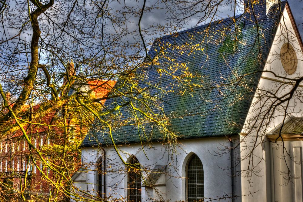 im Grungelook von der Schlosskapelle des Wasserschlosses Herten