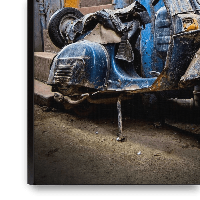 Scooter dans les rues de Jodhpur en Inde. Blue City bleu a abandonné la photographie de rue urbaine du Rajasthan. Asie Asie Asie Asie voyage photographie.