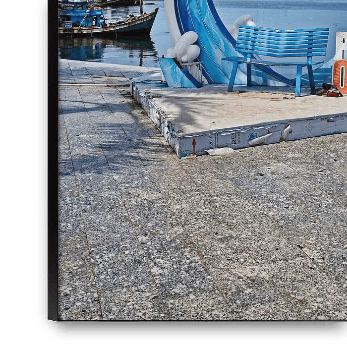 Cette photographie met en valeur un monument décoratif emblématique situé sur le front de mer de Phu Quoc, île vietnamienne réputée pour ses paysages côtiers et son atmosphère paisible. La sculpture représente une vague stylisée aux teintes bleues et blanches, évoquant le mouvement de l’océan et l’identité maritime profondément ancrée…