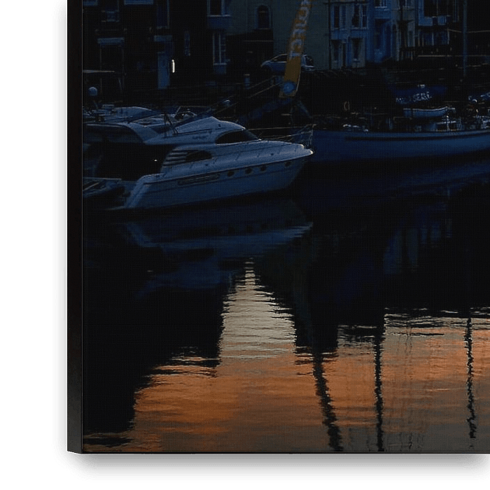 En regardant cette photographie, j'espère que vous pourrez ressentir le calme magique du port de Weymouth aux premières lueurs du jour - quand le monde ne s'est pas encore réveillé, quand les bateaux se reposent dans le calme de l'aube, et que le jour qui vient s'annonce en or et en bleu doux. C'est le calme avant le départ : les bateaux se préparent, les marins s'agitent, de nouveaux voyages sont sur le point de commencer. J'ai photographié ce port pendant des décennies, mais l'aube demande du dévouement - il faut être là avant l'aube, attendre, avoir confiance dans le ciel. Cette architecture silhouettée encadrant l'eau, ces mâts créant une anticipation verticale contre le calme horizontal, les bateaux se reflétant dans une surface immobile comme un miroir - c'est la possibilité maritime distillée dans son essence. Ce qui m'émeut, c'est la façon dont l'aube inverse tout : "The Harbour Mouth" montre des bateaux qui rentrent chez eux, alors que celui-ci montre des bateaux qui s'apprêtent à partir. Les deux célèbrent le même port protecteur, mais il s'agit ici d'inspirer, et non d'expirer. La préparation, pas le repos. La sécurité de savoir que l'on peut s'aventurer parce que l'on a un port sûr où revenir. Parfait pour les bureaux à domicile (nouveau jour, nouveau départ), les cuisines (énergie matinale) ou tout autre endroit où l'on recherche des débuts pleins d'espoir plutôt que des fins dramatiques. Le format horizontal convient parfaitement aux bureaux ou aux tables de petit-déjeuner. Disponible sous forme de tirages photographiques de qualité muséale en plusieurs tailles. Tiré de mon exploration "What Colour is the Wind" (Quelle est la couleur du vent ?) - quand la lumière de l'aube murmure : commencez. J'espère que cela vous plaira !