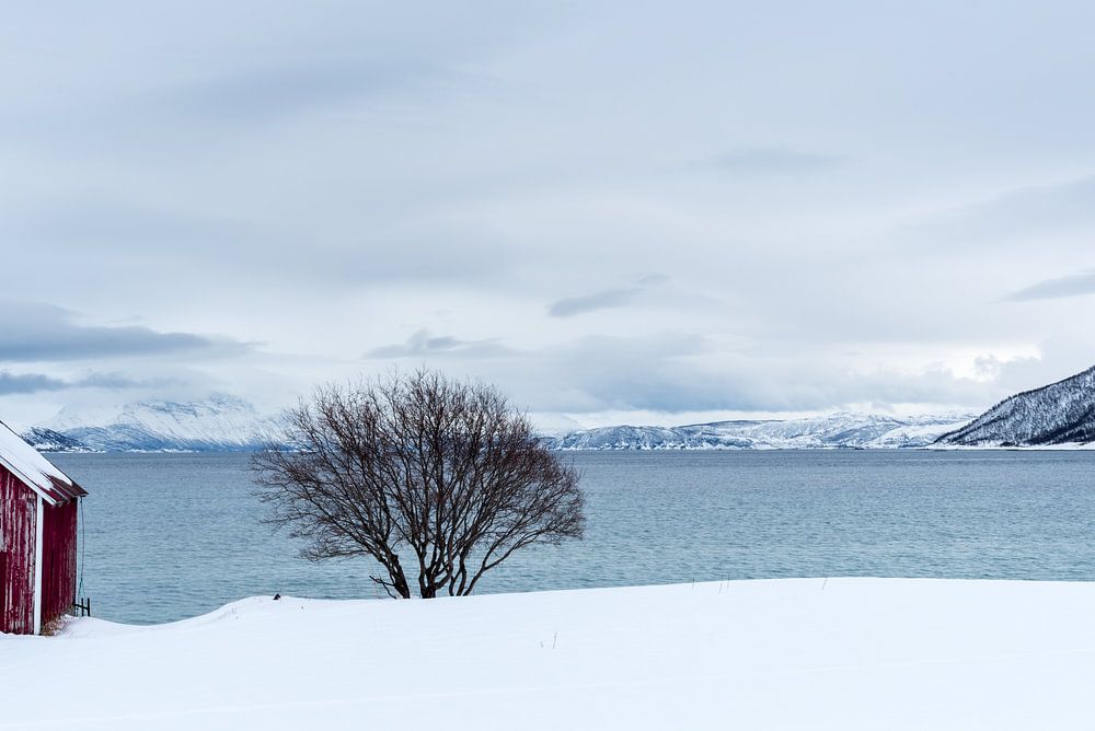 Senja est une péninsule située au nord de la Norvège. En hiver, c'est une région magnifique et les maisons rouges sont mises en valeur.