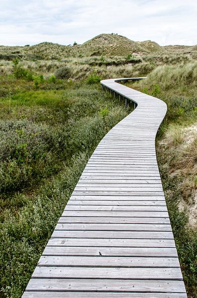 Sentier de planches en bois à travers un paysage de dunes intact par Alexander Baumann