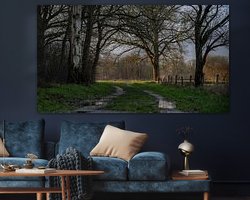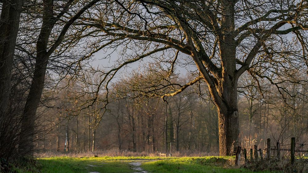 Photo d'un sentier près du domaine d'Eerde le matin avec une douche qui s'approche.