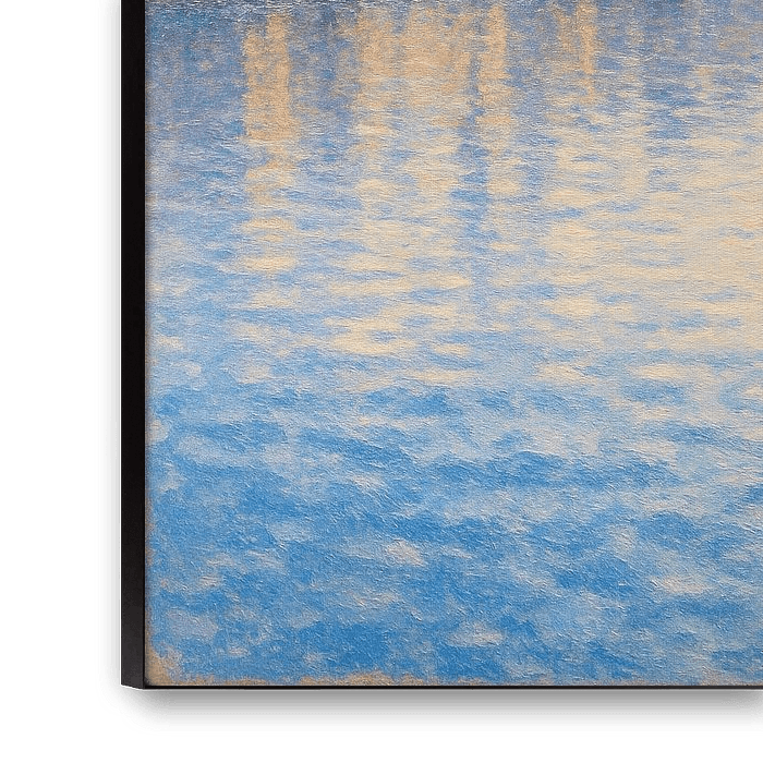 Cette œuvre s'adresse à ceux qui trouvent la beauté dans la retenue et la puissance dans l'immobilité. Les transitions subtiles entre la couleur et la forme ne visent pas à décrire un paysage, mais à transmettre un sentiment - la sérénité qui s'installe lorsque le monde devient silencieux. Les couches de touches douces imitent la dévotion de Monet pour le jeu de la lumière sur l'eau, invitant le spectateur à regarder plus longtemps, à voir les nuances infinies cachées dans la simplicité.