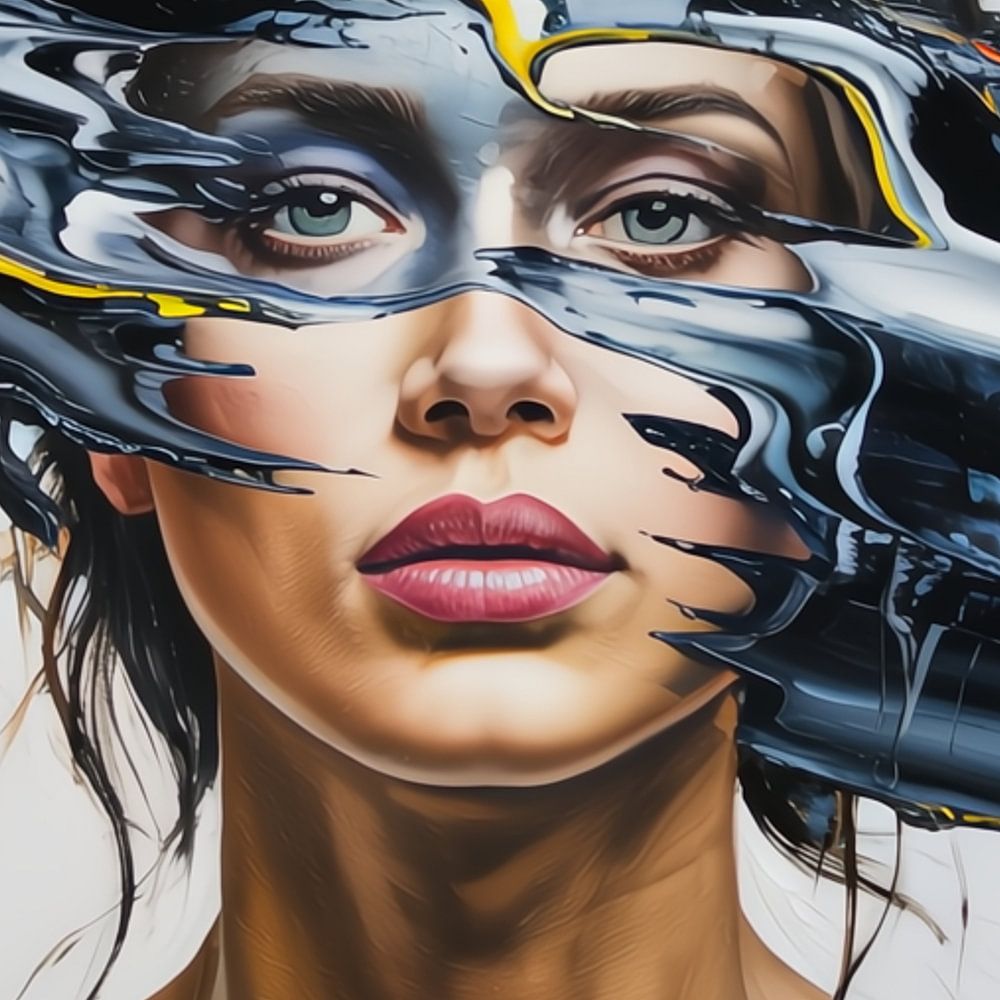 Les œuvres d'art, combine les techniques communes de la peinture à l'huile du réalisme avec la collaboration moderne de l'illustration pour créer un portrait impressionnant. Cette technique de travail combine la richesse des détails et la vivacité d'un portrait réaliste avec les possibilités créatives de l'art numérique.