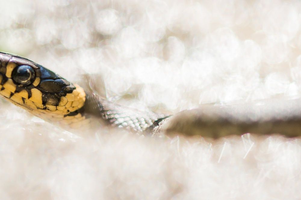 Ce serpent d'herbe a été photographié sur le Veluwezoom. Le serpent est sorti de l'eau à la nage et s'est couché sur la rive pour prendre le soleil. Un point d'observation bas libère le serpent de l'herbe de son environnement et crée un magnifique effet bokeh.
