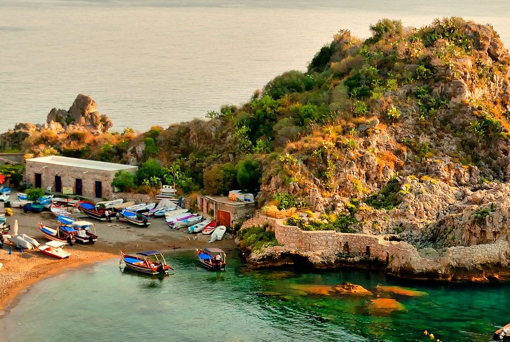 Une petite île rocheuse de la Méditerranée près de Taormine en Sicile.