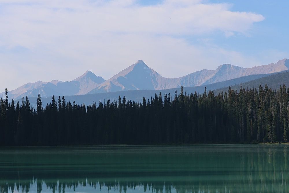 Cette œuvre représente le lac Emerald, entouré des montagnes des Rocheuses canadiennes. L'eau est cristalline et reflète le paysage comme un miroir parfait : les sommets des montagnes, les forêts et les nuages semblent ne faire qu'un avec le lac. Les nuances de bleu et de vert émeraude se fondent harmonieusement.