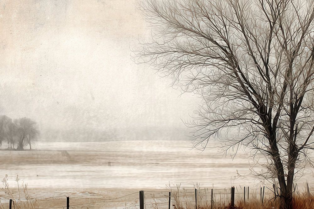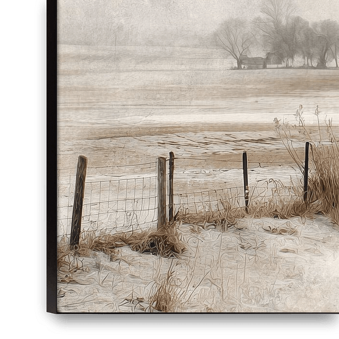 Silence hivernal avec clôture en bois - Beaux-arts dans les tons de terre par BowiScapes - Paysages artistiques