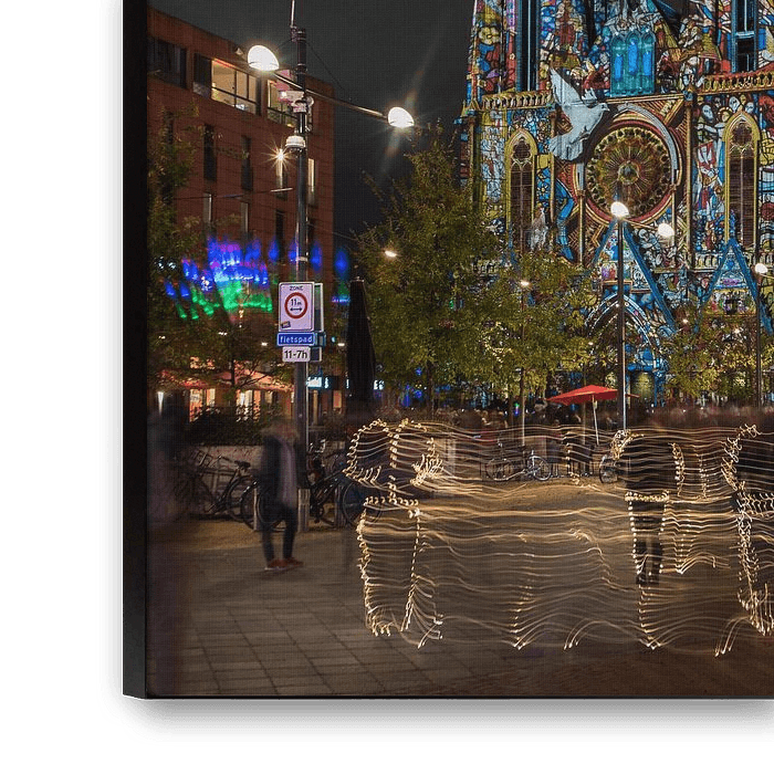 De Catharinakerk staat centraal in dit werk en speelt de hoofdrol in de projectie. Het gebouw functioneert niet als een blanco canvas maar is totaal verweven met het interieur. De neogothische architectuur versterkt dat effect. Het werk voedt zichzelf als het ware: de geprojecteerde beelden zijn bijvoorbeeld uit de kerkramen genomen. Die zijn behoorlijk beschadigd gedurende de oorlog en werden opnieuw ontworpen in de loop van de kerkreconstructie tussen 1945 en 1961.