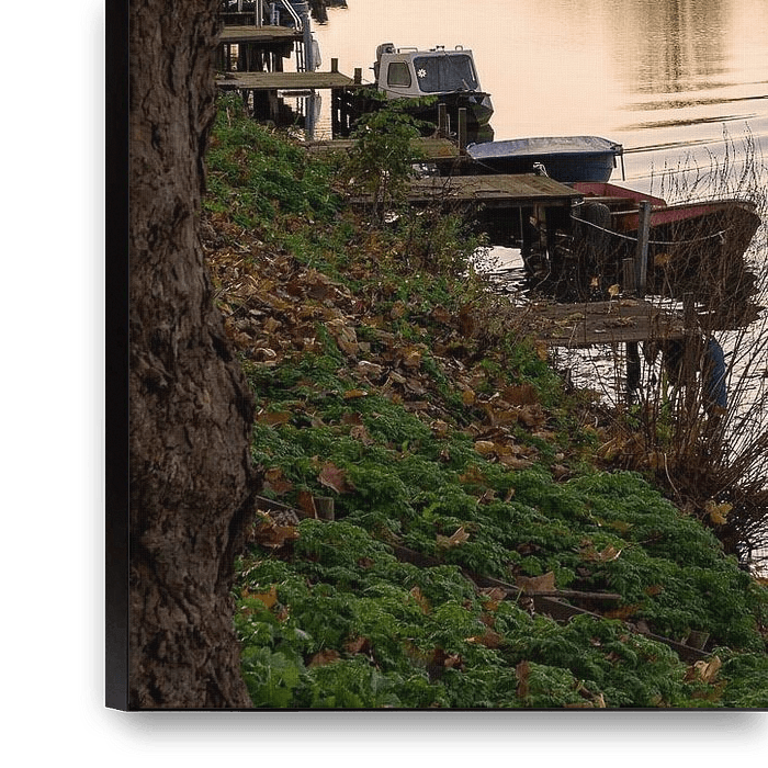 Cet après-midi de décembre, le soleil brille tôt sur la Linge à Heukelum. Un bateau caractéristique navigue en toute tranquillité sur l'eau presque plate. Le rétro-éclairage crée une belle ondulation sur l'eau qui donne à l'image une apparence sereine à mes yeux. Une image attrayante pour créer la paix dans une pièce.