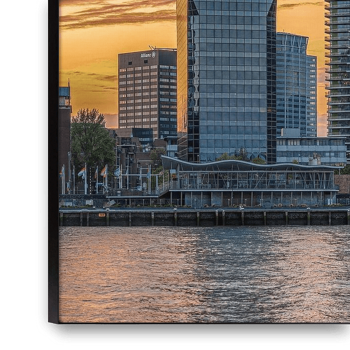 Achetez cette photo de Rotterdam Skyline Rotterdam Coucher de soleil par Leon Okkenburg sur toile, aluminium, ArtFrame ou photographie (encadrée), impression d'art en haute qualité et tout format.