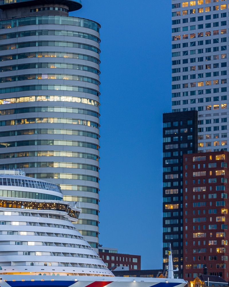 Sur cette image, vous pouvez voir quelques bâtiments emblématiques de cette ville, comme le Montevideo, l'hôtel New York et le port de Rotterdam.