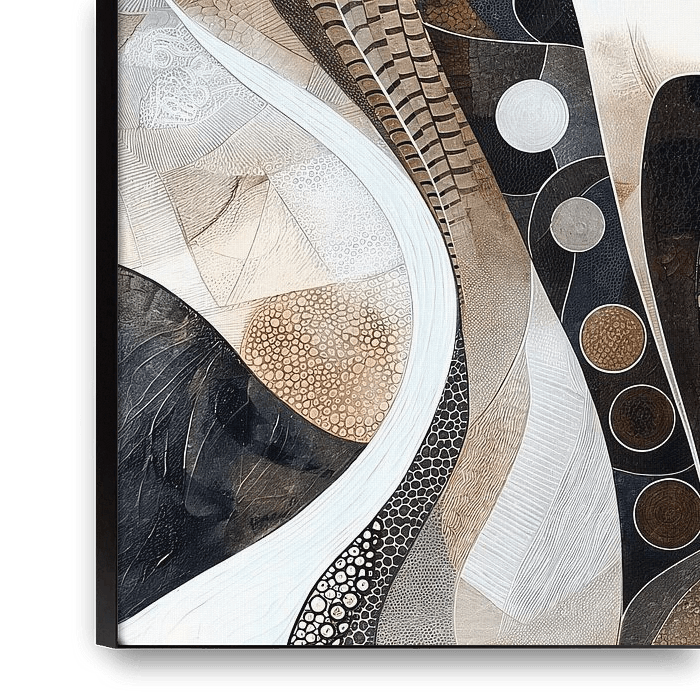 Art figuratif abstrait avec des formes fluides sur une texture grossière dans des tons de terre avec du taupe et du beige.