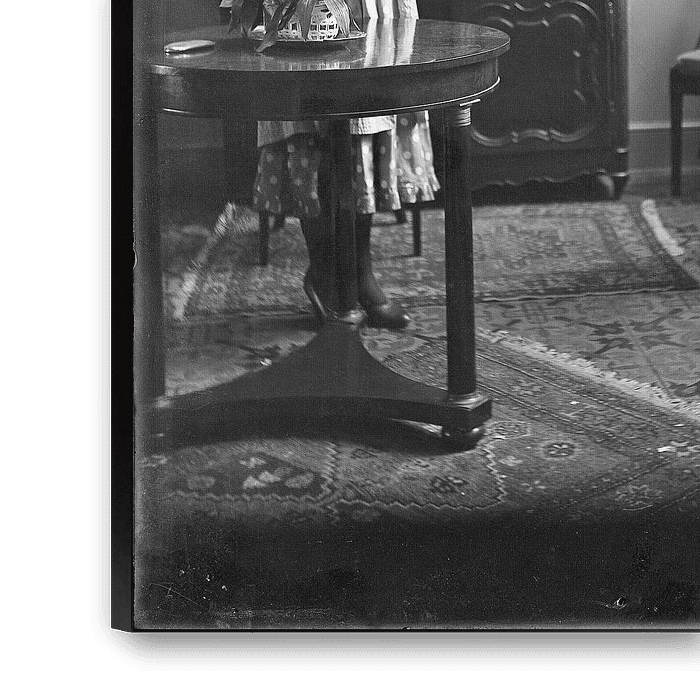 Vous ne vous lasserez pas de sitôt de cette photo des années 1920. On dirait que le photographe est entré dans la maison des deux femmes comme un paparazzo. Elles pourraient être sœurs. Ils sont sur le point de partir : chapeau et manteau déjà en place, gants en cours d'enfilage. Habillé de manière élégante, mais décontractée, et un brin estivale. Toutes deux portent une robe à gros pois, et une veste légère avec corsage. La tendance vestimentaire de l'époque ? Et puis l'intérieur. Léger et atmosphérique, avec un sens du détail. Vases à fleurs, papiers peints exubérants, meubles ornés, bref : très chic (collection Timeview, Beautiful People, Sisters 1920s).