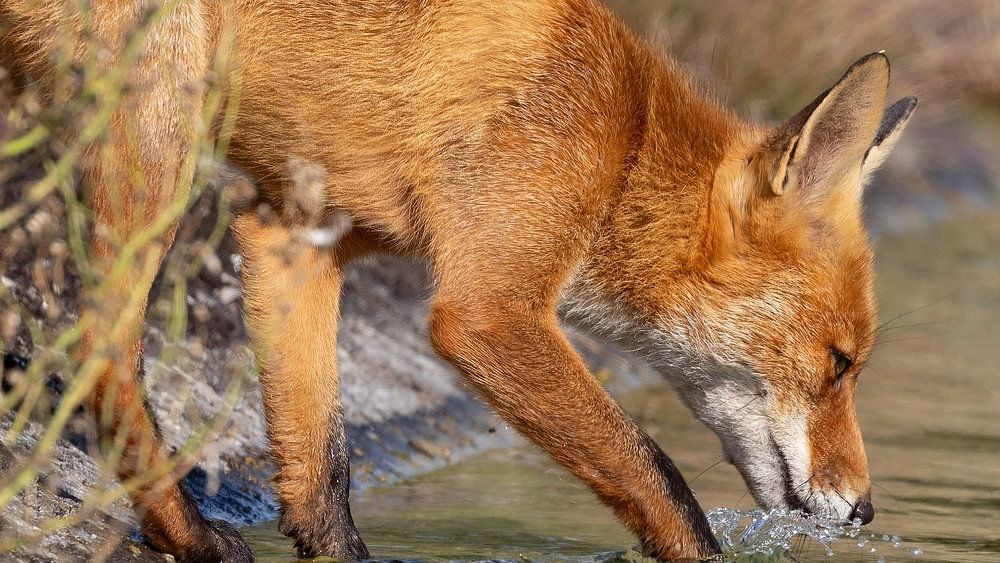Cette photo montre plus qu'un simple renard en train de boire : elle raconte une histoire de connexion avec la nature, de survie pendant les journées chaudes, d'instinct pur. La végétation douce et l'environnement naturel forment un cadre parfait et apportent un équilibre à l'image.