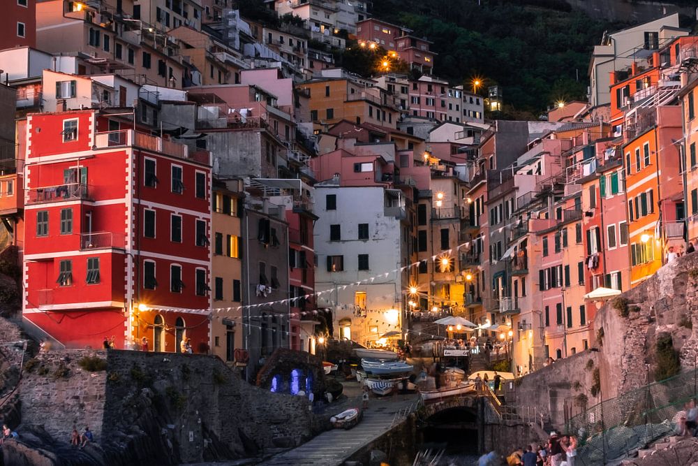La soirée tombe à Riomaggiore, Cinque Terre, Italie.