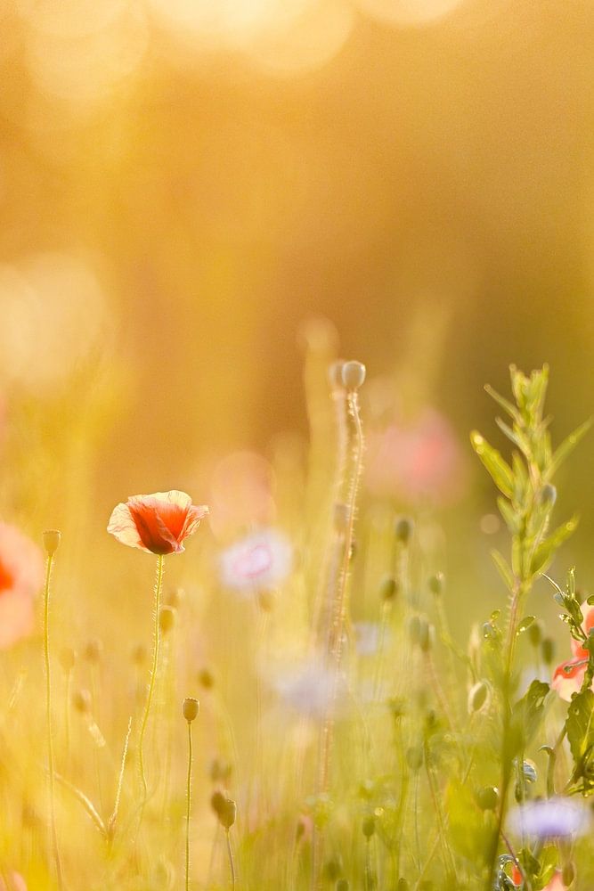 Nous sommes en juillet et chaque soir, nous nous rendons au magnifique champ de coquelicots de notre village voisin. Chaque soir, c'est différent. La lumière est différente, les plantes changent, il y a d'autres insectes. Mais une chose reste la même chaque soir : c'est magnifique.