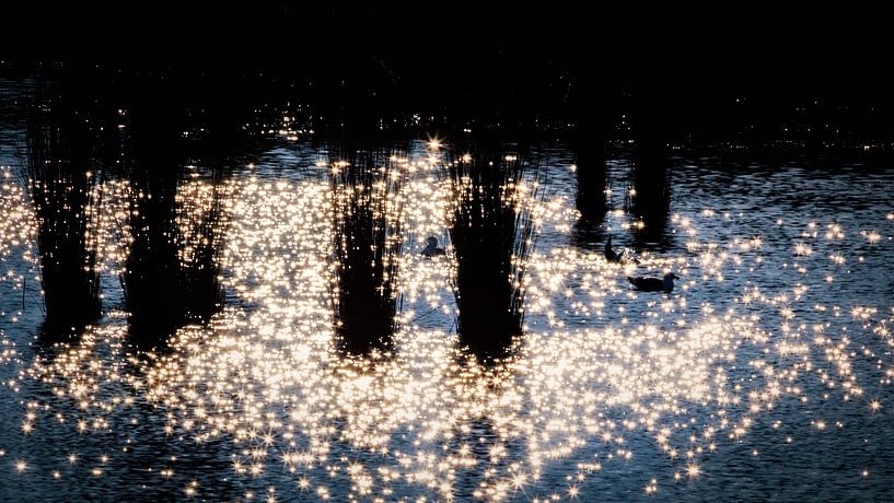 Un soleil printanier éclatant baigne l'eau de l'étang de Oudelandsedijkje à Purmerend. La source scintille et crépite dans les vagues et la lumière réfléchie forme un contraste saisissant avec les roseaux dans l'eau. Il s'agit des grands buissons de roseaux qui ont été plantés et ont poussé à cet endroit et qui sont également utilisés…