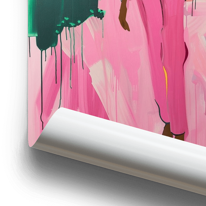 Cette œuvre respire l'assurance et l'amitié estivales. Deux femmes portant des couleurs vives et des lunettes de soleil transmettent un sentiment de connexion et de force. Inspirés par l'énergie d'être ensemble et de profiter des journées ensoleillées, nous voulons célébrer le pouvoir de l'amitié et de la confiance en soi. Cette pièce…