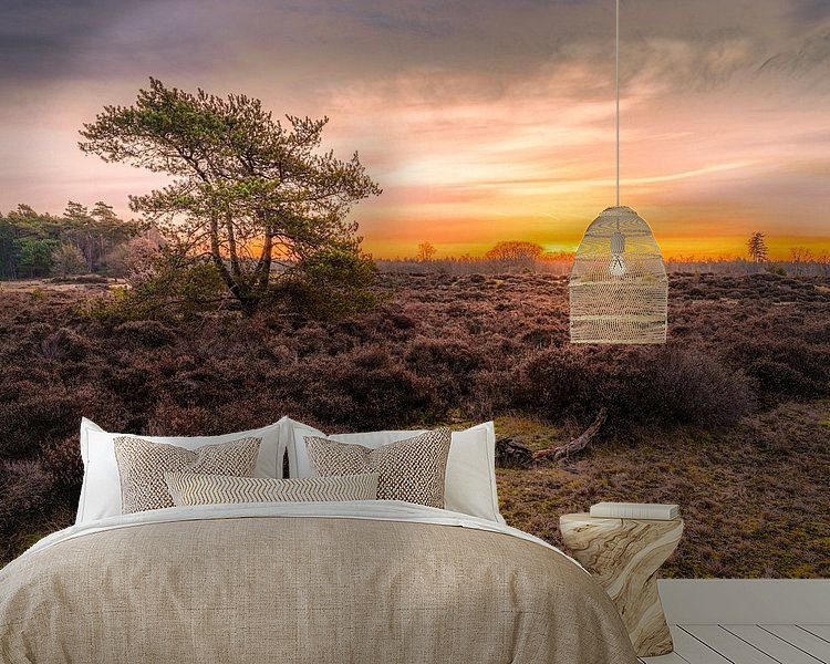 Achetez cette photo Soleil levant sur la lande de Den Treek par Henk Boerman sur toile, aluminium, ArtFrame ou photographie (encadrée), impression d'art en haute qualité et tout format.