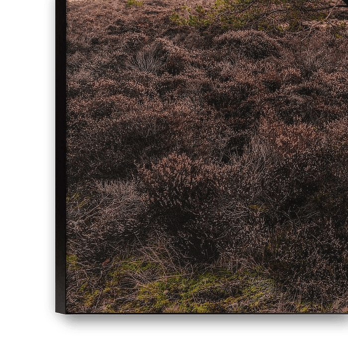 Un lever de soleil spectaculaire à Den Treek. Une belle zone de randonnée entrecoupée de sable, de végétation basse, de buissons et d'arbres. Le moment est juste avant que le soleil ne se lève. Les teintes roses et bleues sont à peine visibles avant que le soleil orange ne colore le paysage.