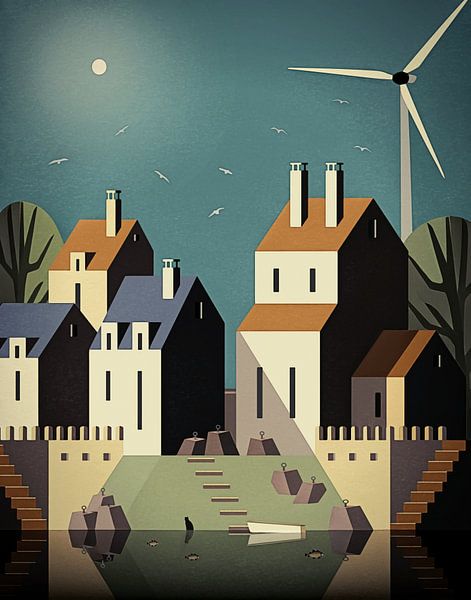 Achetez cette œuvre d'art abstraite Soleil matinal sur la digue par Anna Marie de Klerk sur toile, aluminium, ArtFrame ou photographie (encadrée), impression d'art en haute qualité et tout format.