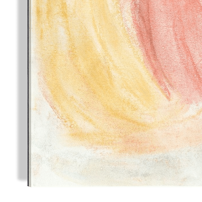 Des formes douces, rouges et orange, flottent dans un environnement brumeux de jaune pâle et de violet. Trois figures sont visibles : une séparément à gauche, et deux plus proches à droite. Leurs contours sont vagues, presque dissous dans la couleur - comme si elles n'existaient pas tout à fait dans la même réalité. Les lignes se…