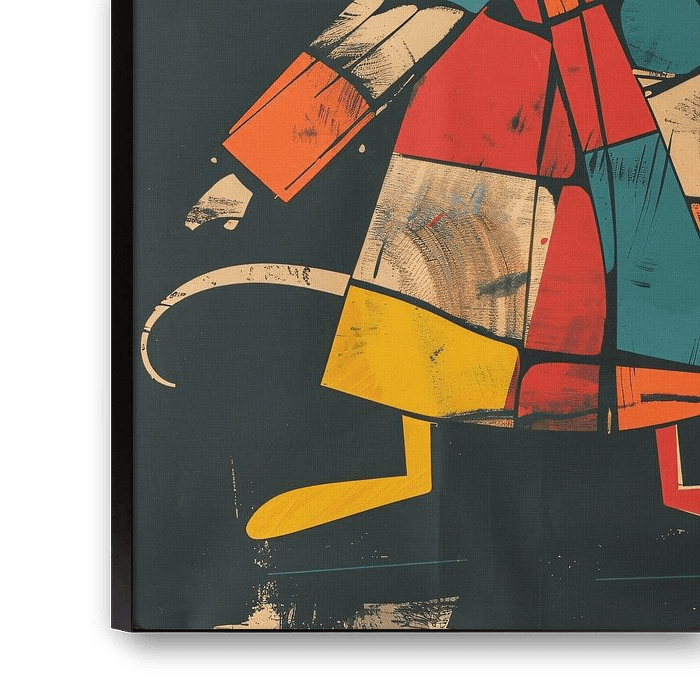 Vêtue d'un manteau coloré, cette souris pleine de vie rayonne de joie pure. Avec ses formes cubistes et sa palette de couleurs audacieuses, elle apporte une énergie ludique à n'importe quelle pièce. Son regard curieux et son apparence joyeuse invitent au sourire et à l'émerveillement. Une œuvre d'art parfaite pour ajouter une touche de dynamisme et de créativité à votre intérieur.
