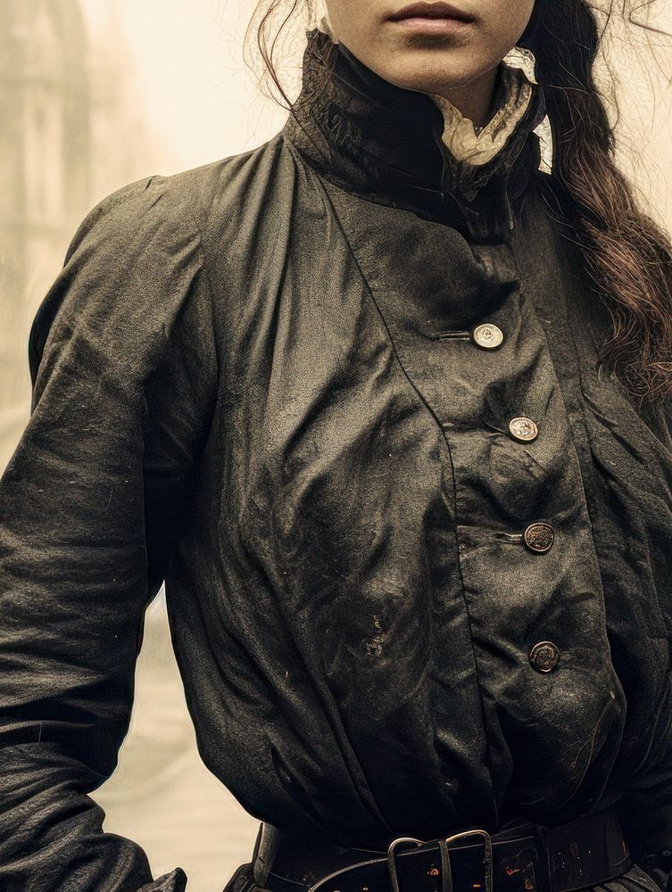 Ce portrait impressionnant met en scène une jeune femme qui, malgré les conditions défavorables de la pluie, dégage une présence silencieuse et déterminée. Ses vêtements sont simples et fonctionnels, mais les détails de ses cheveux tressés et du décor qui l'entoure ajoutent un niveau de profondeur à l'image. L'arrière-plan, qui suggère une ville historique pluvieuse avec des bâtiments imposants, renforce le sentiment de solitude et en même temps de force intérieure. Les rues mouillées et les nuages dramatiquement sombres contribuent à l'atmosphère mélancolique qui se dégage de l'image. Son expression est calme, presque provocante, comme si elle bravait la pluie tout en continuant à se frayer un chemin sans bouger.