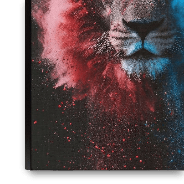 Star Nebula Sovereign&quot ; est un impressionnant portrait de lion, caractérisé par une explosion céleste de couleurs stellaires. Le roi des animaux est ici présenté sur une toile d'un noir profond illuminée par des brumes rouges et bleues, évoquant une atmosphère d'émerveillement cosmique. Cette œuvre d'art associe la majesté du…