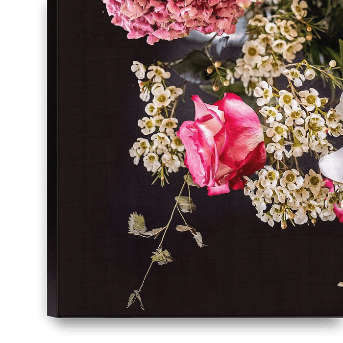 Splendeur florale. On peut presque sentir cette beauté avec des roses, des hortensias et des lys. Cette belle image s'intègre dans tous les intérieurs, classiques, industriels, modernes et même dans une chambre d'enfant.