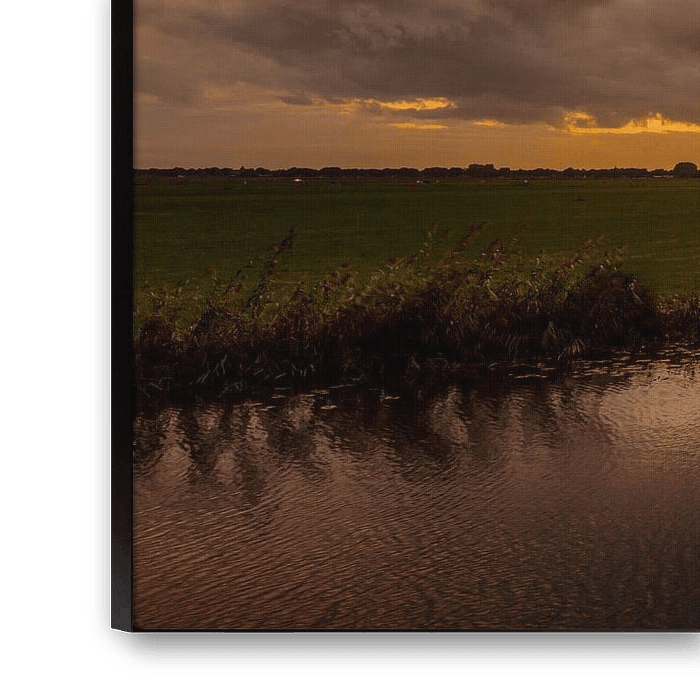 Polderlandschap in Eemnes. Rond het begin van de lente en de herfst is de zonsondergang in het verlengde van het kanaal, maar op deze dag was het tijdens het staartje van een storm wat een prachtige lucht gaf.