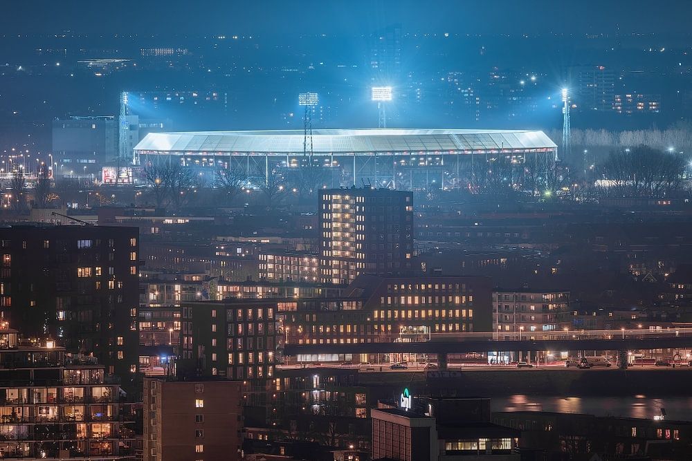 Le stade de Feijenoord 'de Kuip' de nuit.