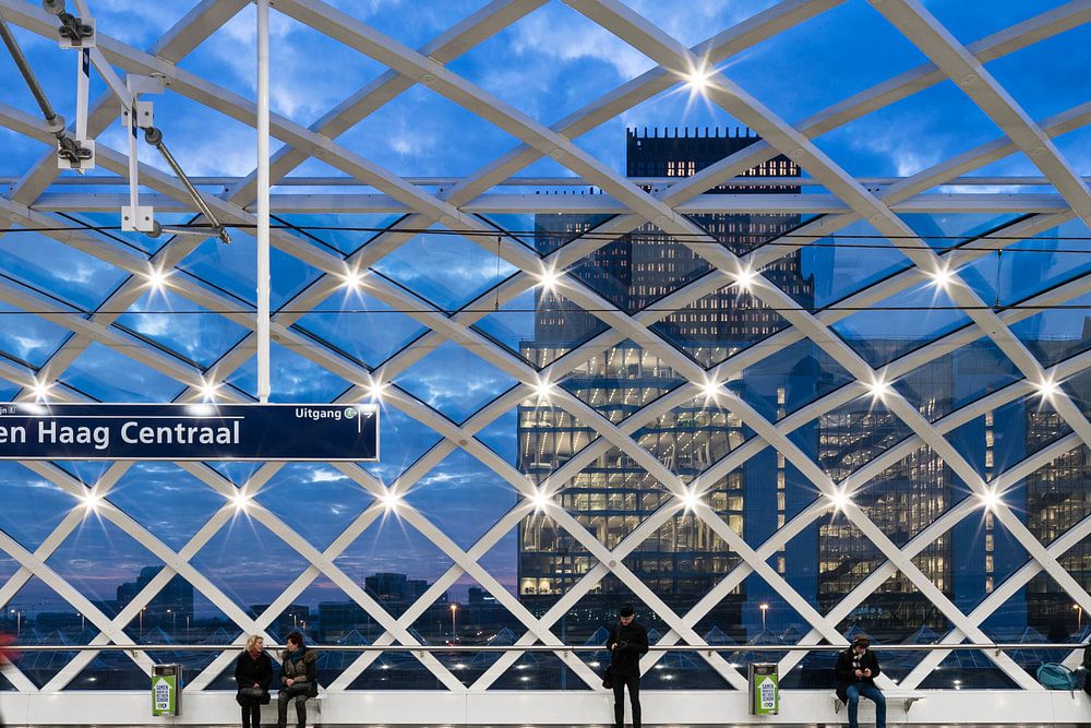 L'arrêt est juste à côté et à moitié au-dessus de la plate-forme d'autobus de La Haye centrale. Les métros atteignent la gare à une hauteur de douze mètres via un long viaduc. L'accroche-regard de la station de métro est le toit en verre cintré et en acier conçu par Zwarts & Jansma Architects. Un chemin de randonnée couvert relie la nouvelle station de métro à la gare de La Haye.