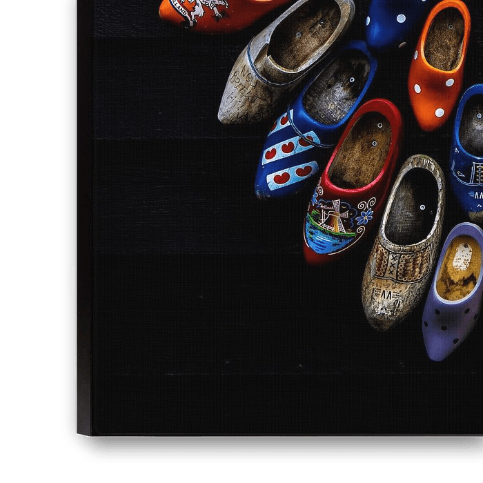 Cette scène de sabots est accrochée à Zaanse Schans, près de la fabrique de sabots. Il a l'air coloré et c'est un produit typiquement néerlandais.