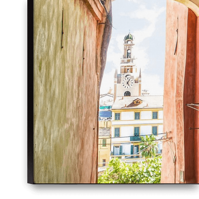 Was aan de lijn in een straat van San Remo met in de achtergrond de Kerk