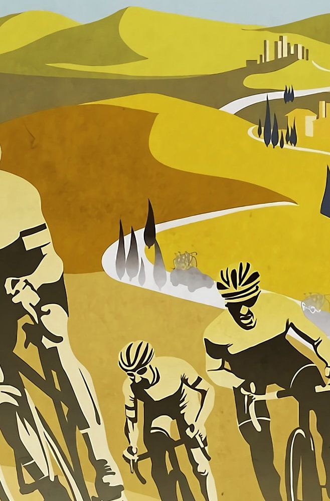 Acheter ce illustration Strade Bianche Retro Cycling par Maria Blair sur toile, aluminium, ArtFrame ou photographie (encadrée), impression d'art en haute qualité et tout format.