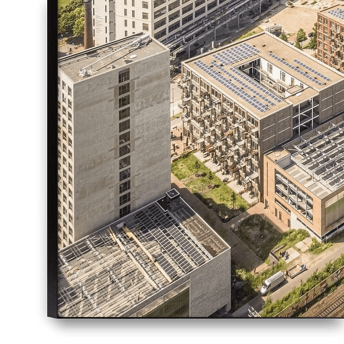 Achetez cette photo Strijp-S et au loin Strijp-T, vu du ciel par Justin Suijk sur toile, aluminium, ArtFrame ou photographie (encadrée), impression d'art en haute qualité et tout format.