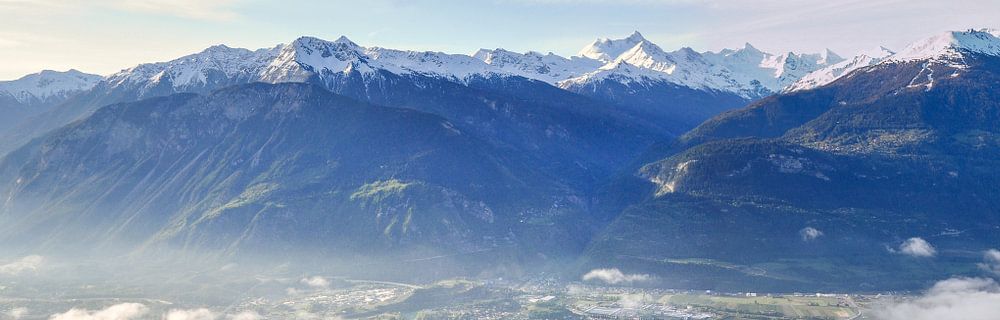 Panorama de la vallée de la ville suisse de Crans-Montana / Panorama de la vallée de la ville suisse de Crans-Montana