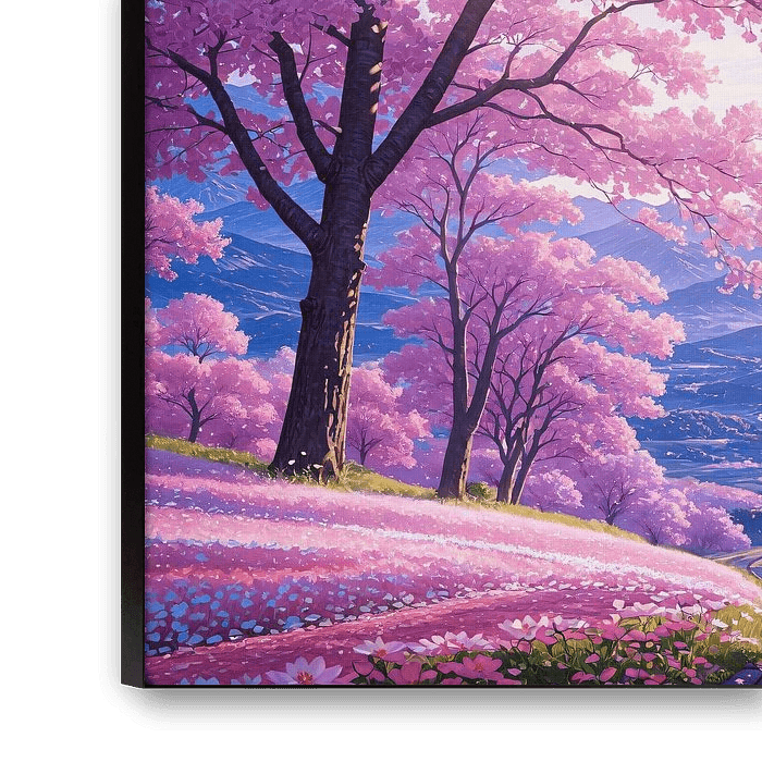 Sous un ciel parsemé d'étoiles et de traînées lumineuses, un imposant cerisier en fleurs se dresse en pleine floraison, ses pétales tombant en cascade comme des murmures d'éternité. Le chemin sinueux en contrebas conduit le regard vers des montagnes lointaines baignées d'une douce lumière, comme s'il guidait l'âme vers un royaume au-delà du temps. Petals of Eternity capture l'harmonie du ciel et de la terre, où les fleurs éphémères rencontrent les cieux infinis.