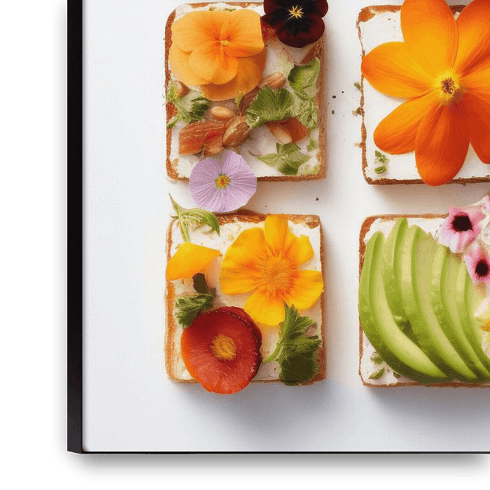 Achetez cette œuvre d'art florale Superposition de crackers organisés avec des choses délicieuses et des fleurs comestibles par Studio Allee sur toile, aluminium, ArtFrame ou photographie (encadrée), impression d'art en haute qualité et tout format.